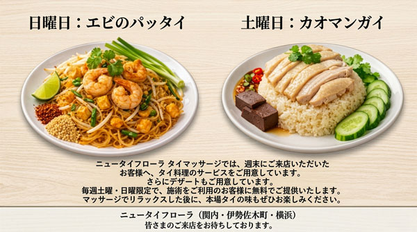 サワディーカー、ニュータイフローラ タイマッサージは、横浜・伊勢佐木町エリアにある本格タイマッサージサロンです。関内エリアでタイマッサージをお探しの方に、本場タイの伝統技術を大切にした施術で、日々の忙しさや疲れから離れ、心と身体をゆったりと整える時間をご提供しています。